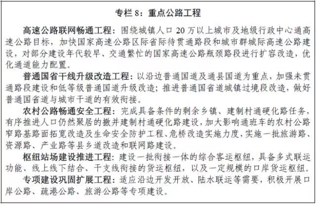 实施高速公路联网畅通、普通国省干线升级改造、农村公路畅通安全、枢纽站场建设推进和专项建设巩固扩展五大工程。