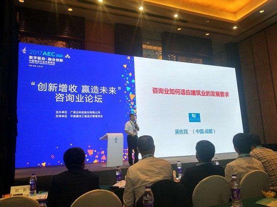 现场,中国建设工程造价管理协会专家委员会常务副主任吴佐民先生首先致辞并发表观点。其以“咨询业如何适应建筑业的发展要求”为主题,从建筑业发展意见、工程咨询业分析、造价咨询业挑战及对策三个方面展开论述。吴佐民指出造价咨询业要想长远发展,在政治上需要去行政化,淡化企业资质;在经济上,需要融资模式、发包模式进行变革;在技术上,企业的经营模式、专业工作方法、数据获取方式都要进行颠覆。