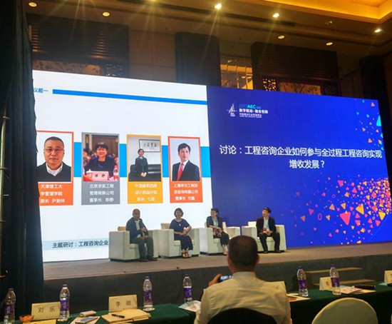 天津理工大学管理学院院长尹贻林教授主持了以“工程咨询企业如何参与全过程工程咨询实现增收发展?”为议题的现场讨论。北京求实工程管理有限公司董事长陈静女士,中国西南设计院造价院长弋理女士,上海申元工程投资咨询有限公司董事长刘嘉先生,三位老师参与了讨论并以自己的业务做介绍,详细论述各自的企业对全过程的理解。